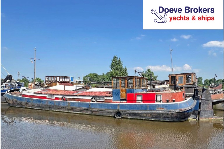 Former inland cargo vessel that first as a sailing ship transported cargo and later has been equipped with an auxiliary engine to transport freight over inland waterways. In 1967 she was converted into a motor pleasure craft and eventually became a houseboat in Amsterdam. The wheelhouse is the entrance to the houseboat with a staircase to the front. This staircase is removable which provides access to the utility room / storage room from where you can reach the aft cabin which is equipped with a double bed. From the aforementioned staircase to the front you enter the hallway with the bathroom on the port side and further forward is the spacious living room with open kitchen. In the foreship is the owner's cabin with a double bed. The hatch cover is equipped with an ecological roof. In our eyes an excellent houseboat if someone is looking for a temporarily habitable houseboat or perhaps wants to replace another houseboat for not too much money. There is no mooring available at this houseboat.